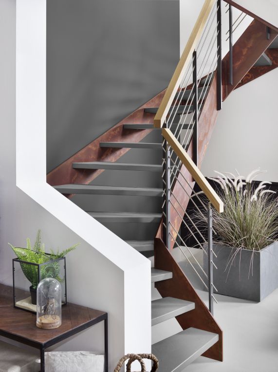 Wangentreppe in Rostoptik und Stufen in Betonoptik Treppenmeister 717h
